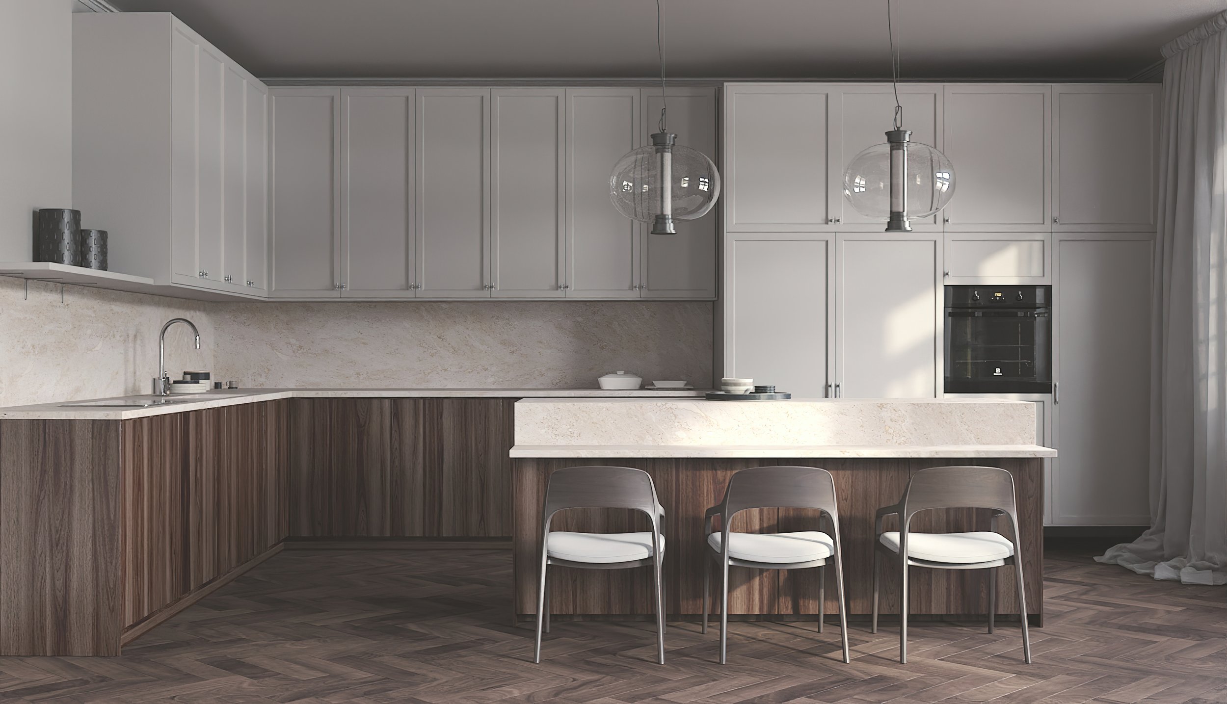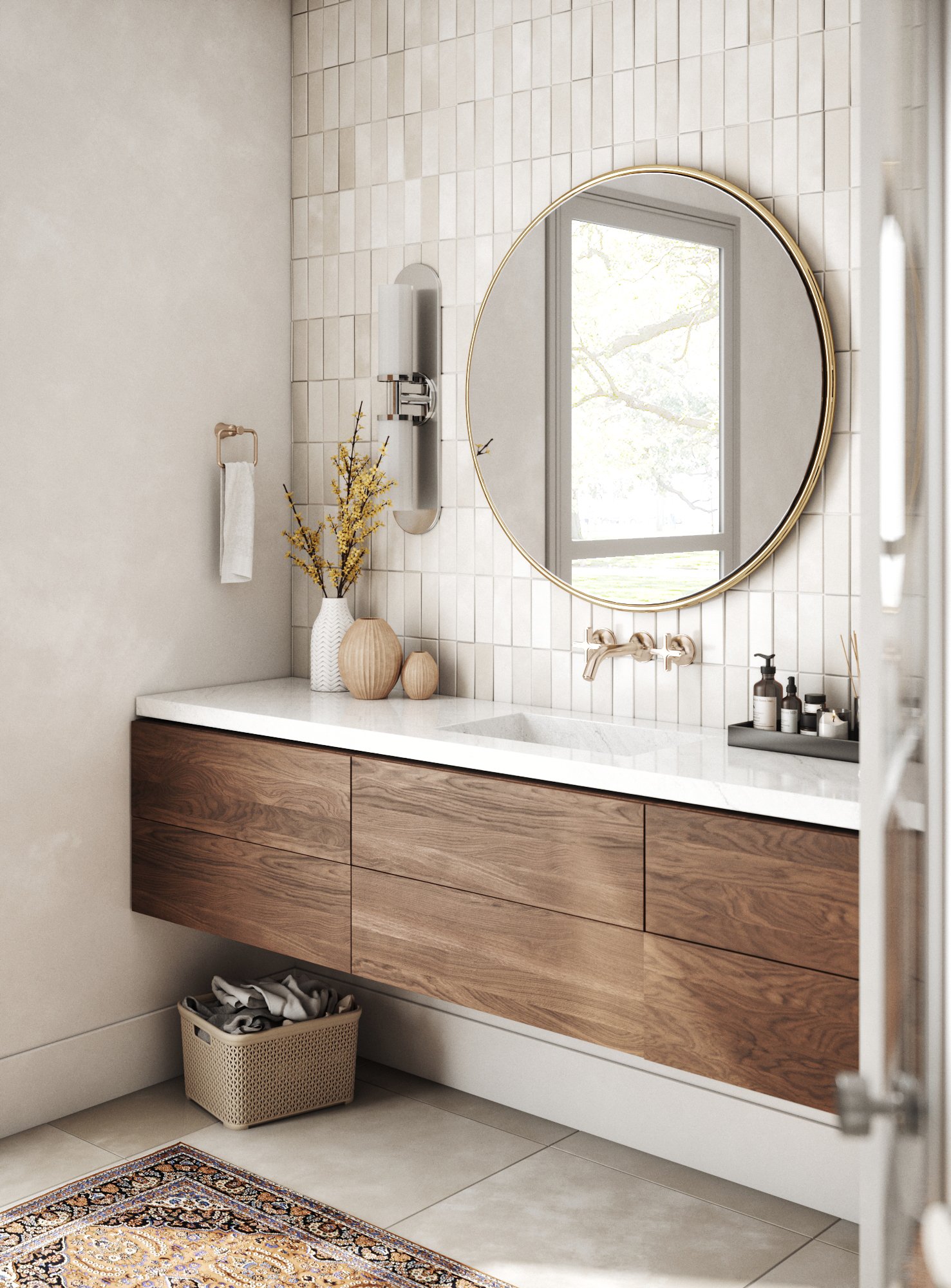 Photorealistic still renders of residential and commercial interiors. Kitchens, bathrooms, living spaces, hospitality. Lit and staged to convey atmosphere and sell the concept.